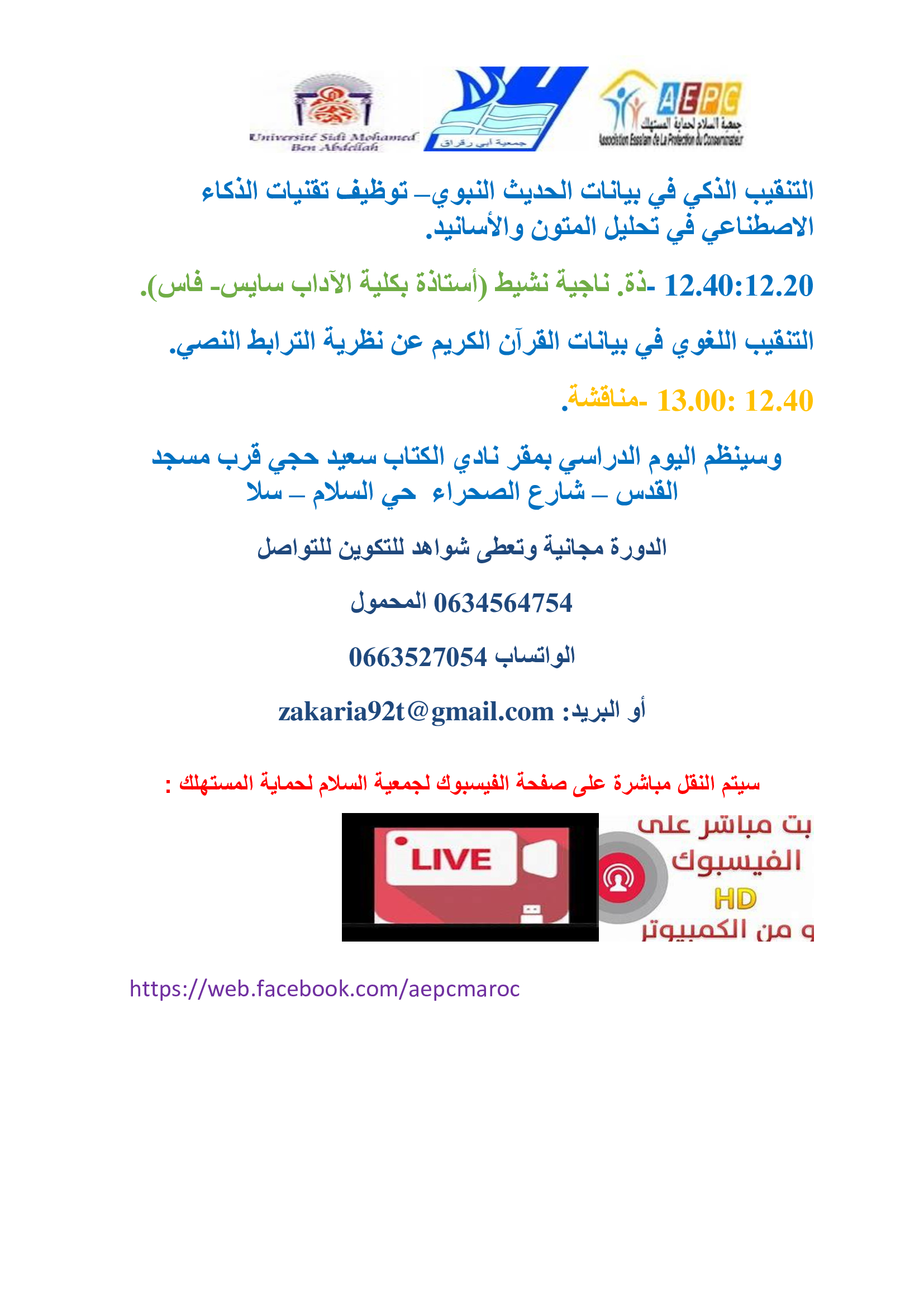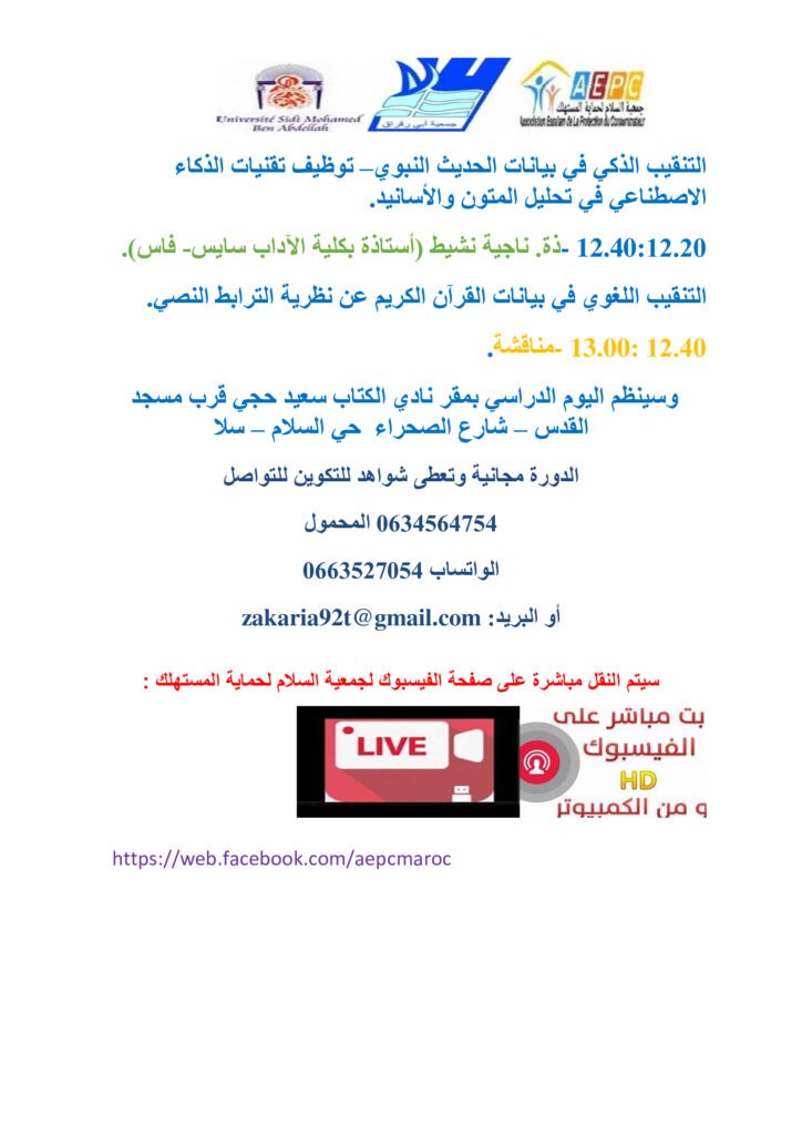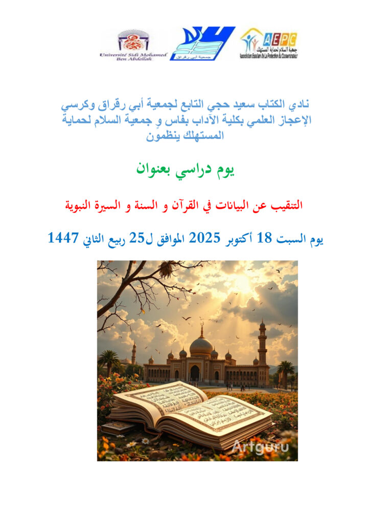 دعوة للمشاركة في يوم دراسي بعنوان التنقيب عن البيانات في القرآن و السنة و السيرة النبوية الكاتب: aepc maroc كتب في: أكتوبر 13, 2025 فى: الأبحاث و الدراسات, مستجدات | تعليقات : 0 Tweet Share › السابق اكتب تعليق انقر هنا لإلغاء الرد. الاسم* البريد الألكترونى* موقعك إرسال التعليق Δ